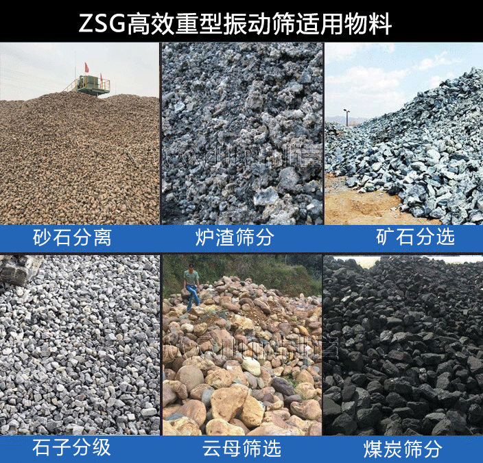 適用于 多種大顆粒物料,如煤炭、石料、礦石等的大量篩分