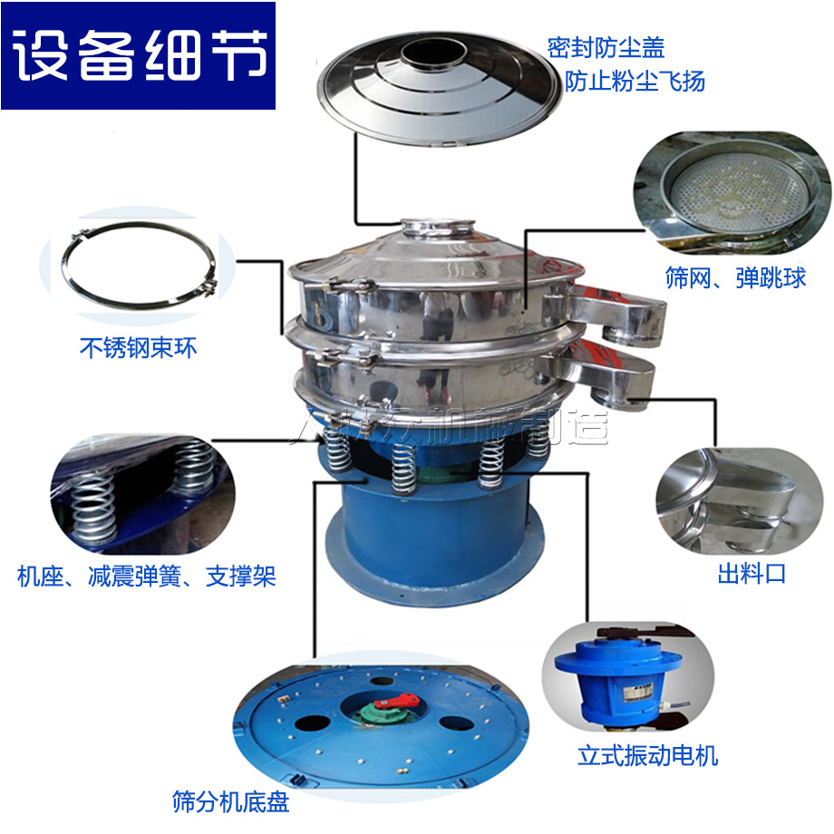 【產(chǎn)品介紹】:旋振篩是一種高精度細(xì)粉篩分機(jī)械適用于粒、粉、塵、粘液等物料的篩分過(guò)濾。