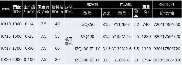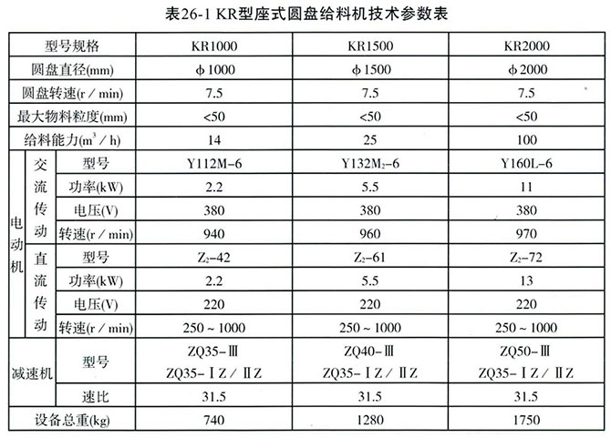 KR型圓盤給料機(jī)技術(shù)參數(shù):