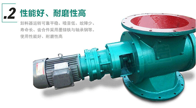 YJD卸料器結(jié)構(gòu)緊湊、造型美觀、使用方便、運(yùn)轉(zhuǎn)平穩(wěn)、噪音低,由于軸成,齒輪箱離開殼體一段距離,對(duì)于高溫,潤滑都有較大改善。YJD卸料器常用在氣力輸出系統(tǒng)中,對(duì)于壓力輸出系統(tǒng)或負(fù)壓輸出系統(tǒng),YJD卸料器卸料器可以均勻,連續(xù)地向輸料管供料。以保證氣力輸出管內(nèi)的氣、固體比較穩(wěn)定,從而使氣力輸送能正常工作,同時(shí),又能將卸料器的上、下部氣壓隔斷而起到鎖氣作用。YJD卸料機(jī)工作時(shí),粉塵靠重力落入,充滿上面和側(cè)面的星形葉片空格。葉片轉(zhuǎn)子由電動(dòng)機(jī)通過減速機(jī)轉(zhuǎn)動(dòng)軸帶動(dòng),葉輪轉(zhuǎn)到下部粉塵靠自重卸下。耐溫型所輸送物料的溫度可達(dá)280°C兩端軸承與葉輪有一定隔離,能防止超細(xì)粉料與軸承接觸。耐高溫型卸料器輸送物料的溫度可達(dá)500°C,采用鏈輪連接,減速機(jī)和卸料器殼體有一定的距離。  YJD卸料器的特點(diǎn):
