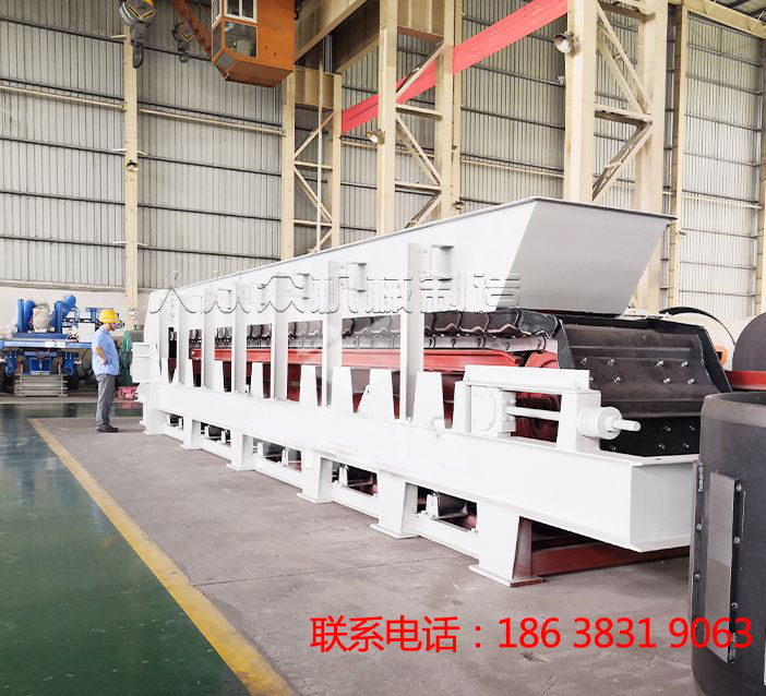 板式給料機(jī)有輕型、中型、重型三種,其至大向上傾角20度。分別適用于沿水平或傾斜的線段由貯料倉(cāng)向破碎機(jī)輸送機(jī)或其它工作機(jī)械與容器連續(xù)均勻地配給和輸送堆積密度分別為:輕型機(jī)為不大于1200kg/m3,塊重不超過(guò)140kg,溫度不高于350℃的各種塊狀和粒狀、散狀物料;中型機(jī)為不大于2400 kg/m3,塊重不超過(guò)500kg,溫度不高于400℃的各種松散物料;重型板式給料機(jī)規(guī)格有槽寬1000、1250、1500、2000、2500、3150毫米,長(zhǎng)度為420米,多種型號(hào)的設(shè)定可滿足不同環(huán)境下的使用情況。