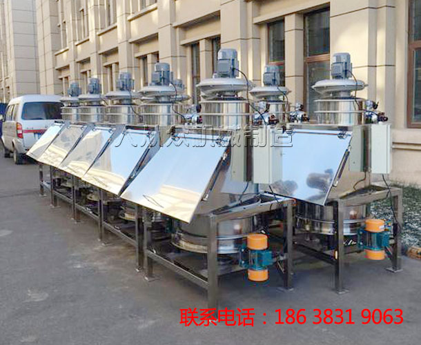 當(dāng)小袋物料需解袋并倒入下一道工序時,只需人工直接拆包后投入到該系統(tǒng),投料時所產(chǎn)生的物料粉塵由集塵風(fēng)機(jī)進(jìn)行收集。物料通過振動篩(安全篩網(wǎng))可將大塊物料和異物攔截,從而保證符合要求的成品(合格物料)進(jìn)入下道工藝。該設(shè)備適用于食品、制藥、化工、冶金行業(yè)中小袋物料的拆包、投放、篩分和卸料,特別適用于粉料人工投料和預(yù)篩分,拆包時由于集塵風(fēng)機(jī)的作用,可以避免物料粉塵到處飛揚(yáng)。