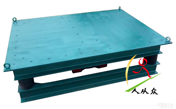 振動平臺主要用于物料的震實(shí),減少物料內(nèi)的空氣和縫隙,可以把顆粒、粉狀物料從散裝變?yōu)閴K狀或其他形狀等形式上的轉(zhuǎn)變。人防門振動平臺主要用于人防門造型時,通過振動電機(jī)帶動機(jī)體振動使砂充分緊實(shí)和充滿鑄型,人防門振動平臺的臺面與機(jī)座采用空氣彈簧連接,工作時噪音低,減振效果好。人從眾機(jī)械制造有限公司是一家專門生產(chǎn)人防安防防護(hù)門振動平臺,可按客戶要求設(shè)計(jì)。 人防門振動平臺結(jié)構(gòu):